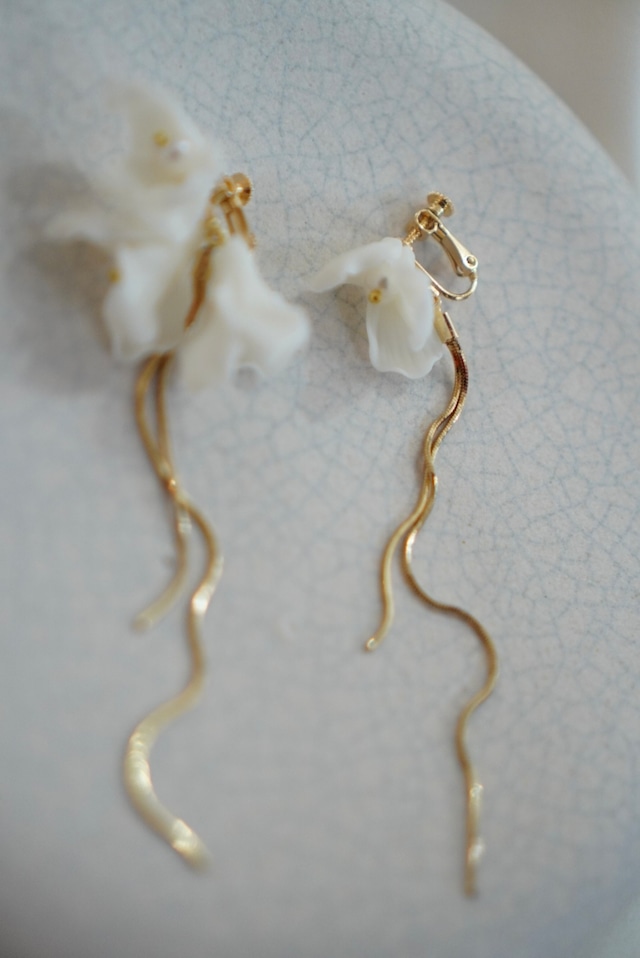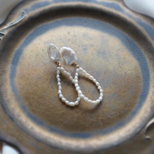シンプルなデザインでどんなアイテムにも合わせやすいので、ヘッドドレスが決まっているがイヤリングを迷っているお客様におすすめです。