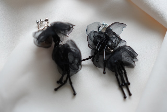 ハンドメイドアクセサリーは繊細な作りになります。無理にひっぱるなど強い衝撃を与えてしまうと破損や変形の原因となりますのでお取扱には十分ご注意ください。
